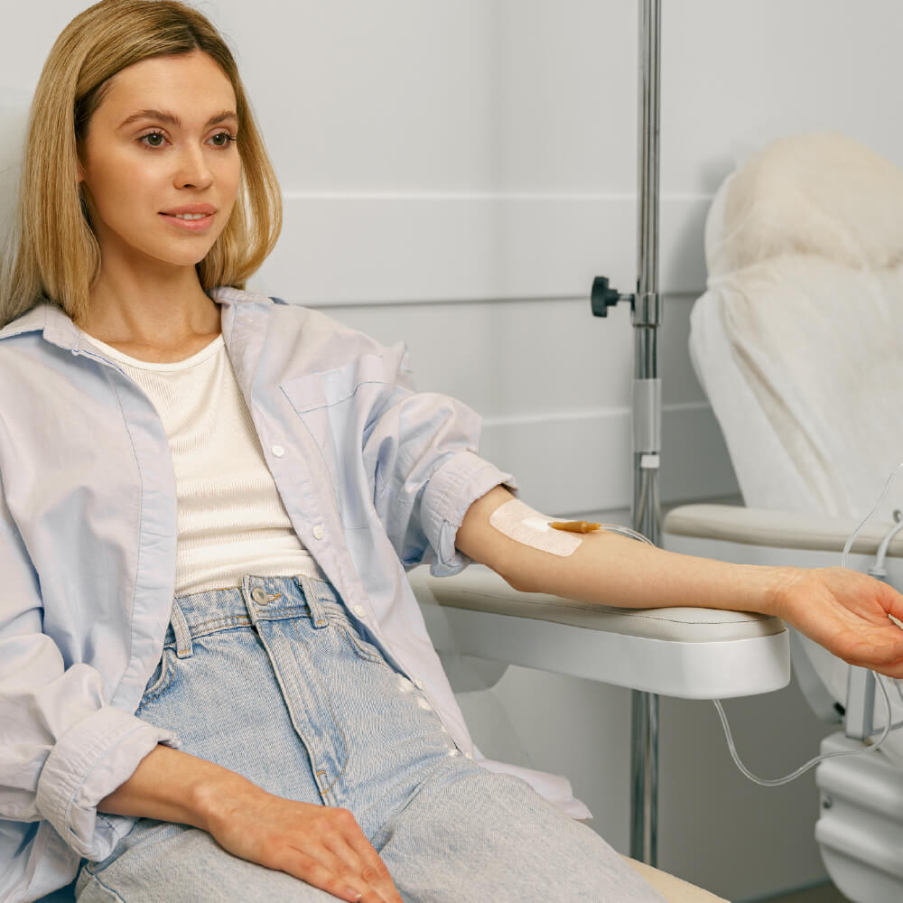 Je start met het dieet en de ampullen van AB-Slim and Healthy+, die de hypothalamus stimuleren en vetzuurafbraak bevorderen. Daarna volg je 2 infuusbehandelingen om de 14 dagen. Na deze behandelingen bekijken we of we doorgaan met nog 2 infusen.
